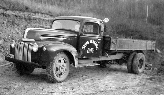 Ford i Ingvar Lundqvist Åkeri i Östanbäck. Skall lasta grus, för hand.
