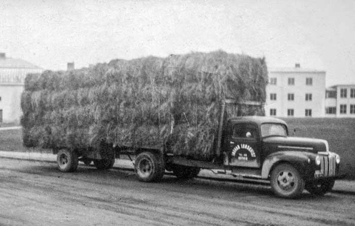 Ford i Ingvar Lundqvist Åkeri i Östanbäck. Fullt hölass vid Nordanå i Skellefteå.