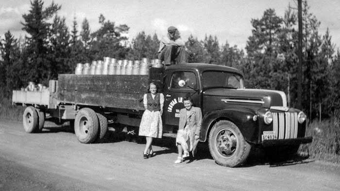 Ford i Ingvar Lundqvist Åkeri i Östanbäck. Mjölktransport från Östanbäck till mejeriet i Byske.