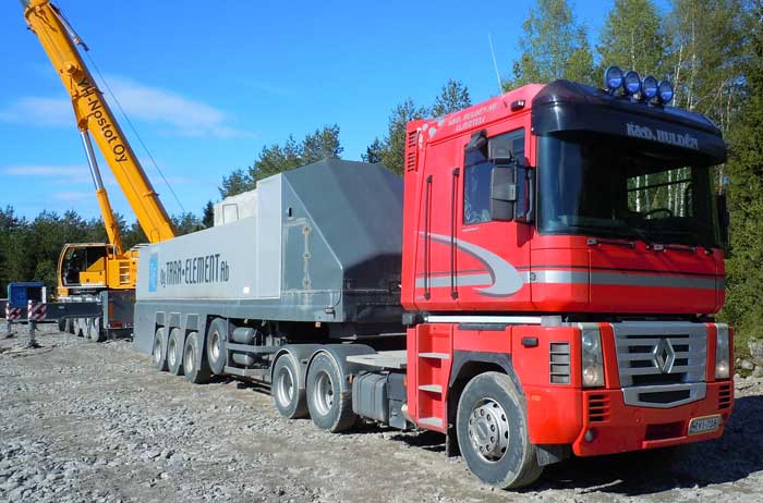 Många komponenter från Volvo: daghytt från Volvo F10/12, motor: Volvo TDA100A på 250 hkr, SR62 växellåda, framaxel och tandemboggie samt motorn i krandelen som är en TD40A (6 cyl på ca 100 hkr). Det var samma motor som i Volvo F4. 50 tons lyftkraft.