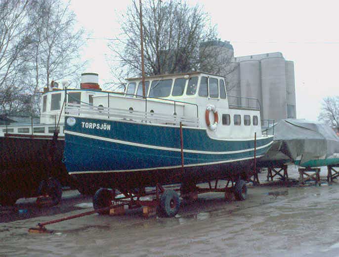 Byggdes för Indals Älfs & Ljunga Älfs Flottningsförening, Sundsvall som TORPSJÖN med placering i sjön med samma namn. Sedan flottningen upphört i början på 1970-talet såld till privatpersoner i Enköping. (Fakta: Bengt Westin)