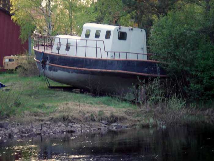 I oktober 2002 anlände den här gamla båten hit till Ångriket, där mark har ställts till förfogande för temporär uppställning.