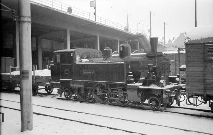 Stockholm-Saltsjöns Järnväg, SSnJ lok 5 - Saltsjöbaden nr 7 - vid Stadsgården 1954