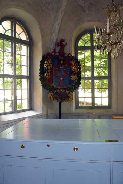 Gravkor från 1918 ritat av Axel Lindegren, för frihere Aug Trolle-Löwen på Trollesund (syns i bakgrunden) och hans hustru.