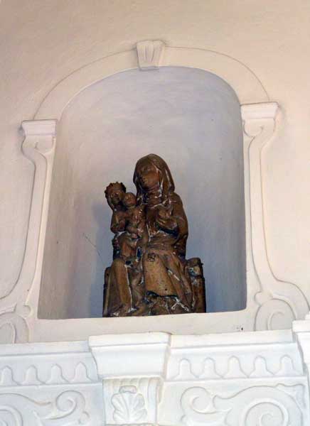 Reliefsymboler som utgjorde prydnader i valvribbornas skärningspunkt på det tidigare valvet (1420-talet)