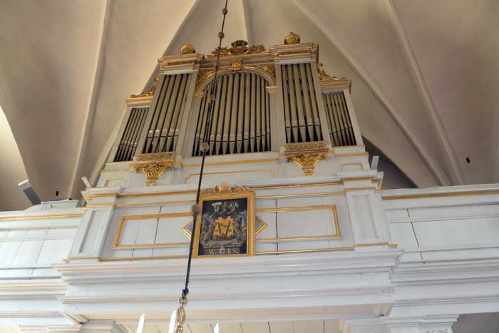 Orgelfasaden är från 1860-talet. Orgeln från 1948. (Mårtenssons orgelfirma i Lund)