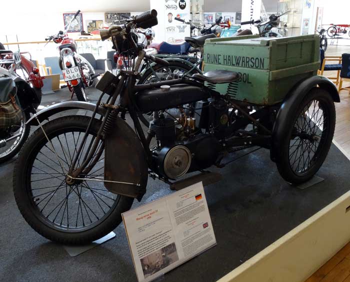 500 cc encylindrig sidventilare. Växellåda är en Sturmey-Archer 3-speed.