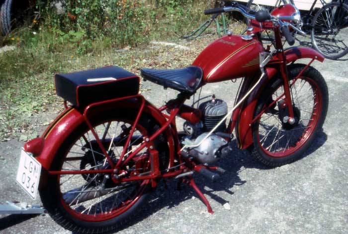 496 cc sidventils, 4-taktare på 13 bhk vid 4200 v/min. 4-växlad.