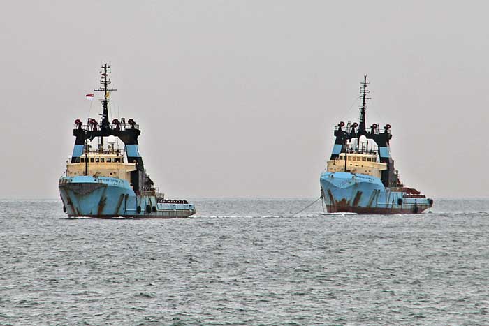 MAERSK CLIPPER och MAERSK CUTTER under bogsering inför upphuggning, utanför Singapore - 16 februari 2013