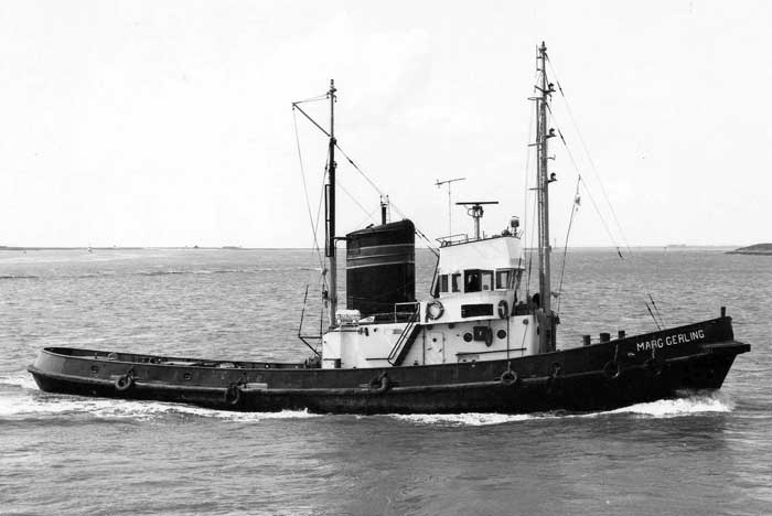 Byggdes för Société Annonce de Remorqueurs a Hélice, Antwerpen som MARG. GERLING. Övertogs 1974 av Unie van Redding en Sleepdienst N.V., Antwerpen och namnet förlängdes till MARGUERITE GERLING. Flyttades den 2 sept 1991 till Sleepdienst Willem Muller Nederland B.V., Terneuzen där namnet ändrades till ZEELAND men återkom till Unie van Redding en Sleepdienst B.V., Terneuzen den 1 juli 1999. Såldes den 22 dec 1999 till R Harvey, Cleethorpes, (GB) och omdöptes till ELLA. Köptes 2002 av Dave Howe, Hartlepool och blev restaurang.