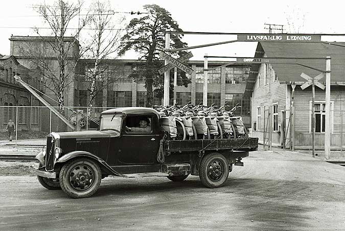 Lastade på lastbil lämnar ett antal nybyggda Speed fabriken - 1938