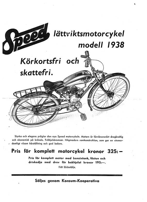 Speed tillverkades av AB Baltic i Södertälje från mitten av 1930-talet och några år framåt. Ramen var en förstärkt cykelram med en 98 cc ILO-motor. Effekten var ca 1 hkr. 2-växlad låda.