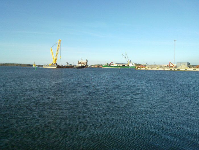 METEOR med pontonen HARRY, lastad med Havators 1100 tons kran. ISBJÖRN assisterar in till Brahestad - 9 september 2010.
