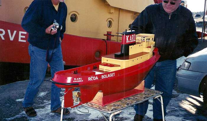 Modell av en ännu ej färdigbyggd KARL, som visades upp för besättningen på JÄRVEN av byggaren