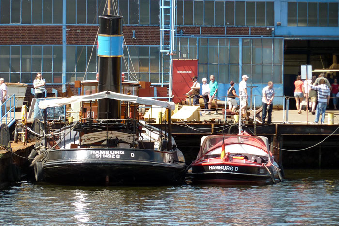 CLAUS D i Hamburg med den tidigare tullbåten PRÄSIDENT SCHAEFER (1925) på utsidan - 26 juli 2007