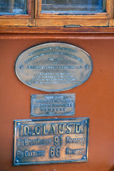 Hamnbogserare i Hamburg som MOORFLETH hos J.P.W. Lütgens. Var hamnbogserare till 1968. Har även hetat SCHULAU. Skänktes av C.R. Eckelman 1984 till Museumshafen Oevelgönne. Heter numera CLAUS D. Renoverades utvändigt 1995-1998. 2006 dömdes pannan (från 1957) ut och sedan 2008 byggs en ny panna. Båten beräknas vara färdigrenoverad under 2010.