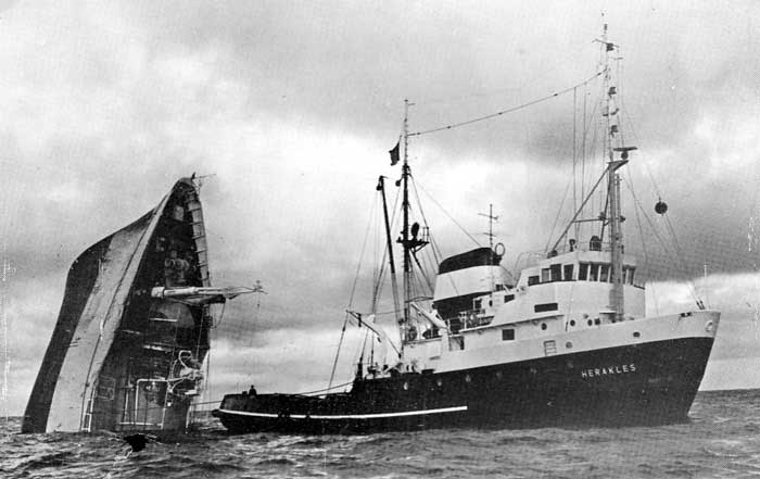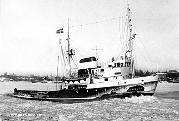 Levererades i december 1965 till Bergnings & Dykeri AB, Neptun, Stockholm med namnet HERAKLES. Överfördes till samma ägares Göteborgs Bogserings & Bärgnings AB, Göteborg 1968 och kallades då DAN (troligen efter Dan Axel Broström). Såldes 1973, för £685.000, till Ministry of Defence, London som byggde om till ubåtstender i Selby och döpte om till WAKEFUL. 1988 hamnade hon i Grekland, inköpt av Ellinika Rymoulka Navagosostika NE, Piraievs (Mng Megalohari Hellenic Tugboats). Där ändrades namnet till AEGEON PELAGOS, flera år senare ändrat till AEGEAN PELAGOS. I fart 2006.