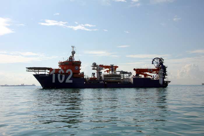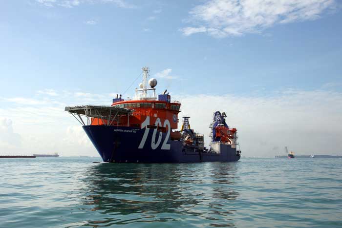 NORTH OCEAN 102 (9HPS9) hos McDermott Marine Construction, Maltaflaggad. Kabelläggnings fartyg.