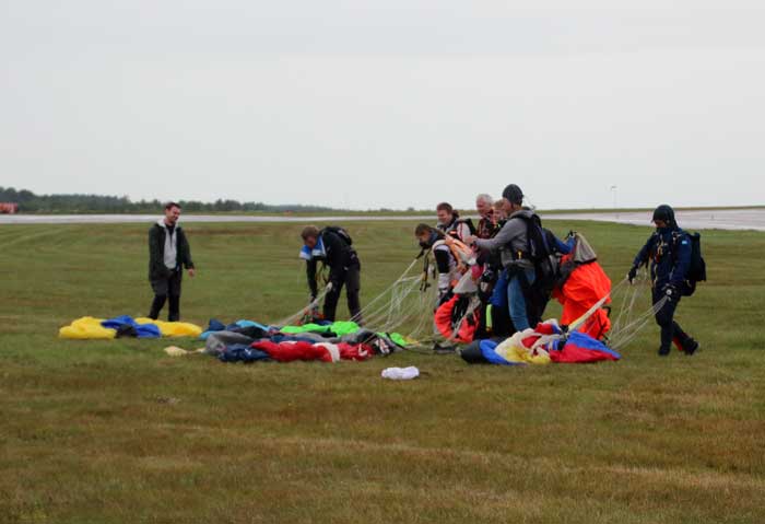 "Daisy" lyfter med fallskärmshoppare, därav den avhängda dörren.