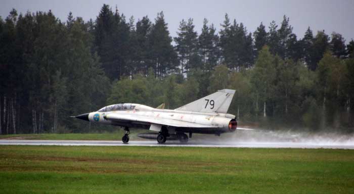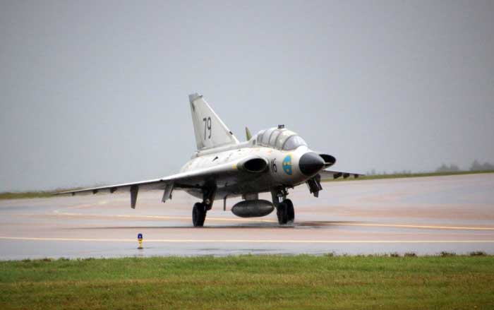 AJS 37 flög sista gången 2000. Räddades till SWAFHF (Swedish Air Force Historic Flight) som sedan 2012 flyger uppvisningar med flygplanet.