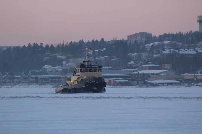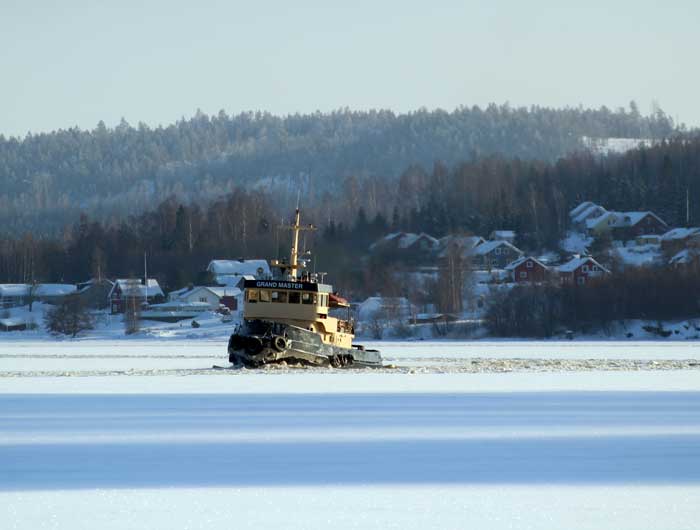 GRAND MASTER bryter upp isrännan till Oljekajen i Järved - 22 februari 2018