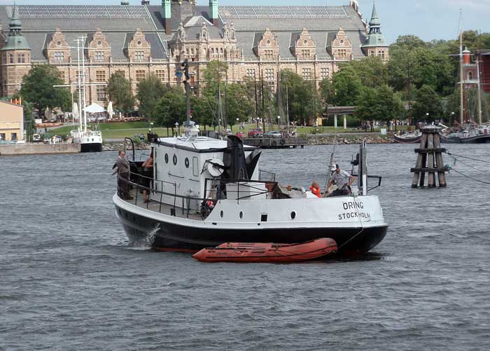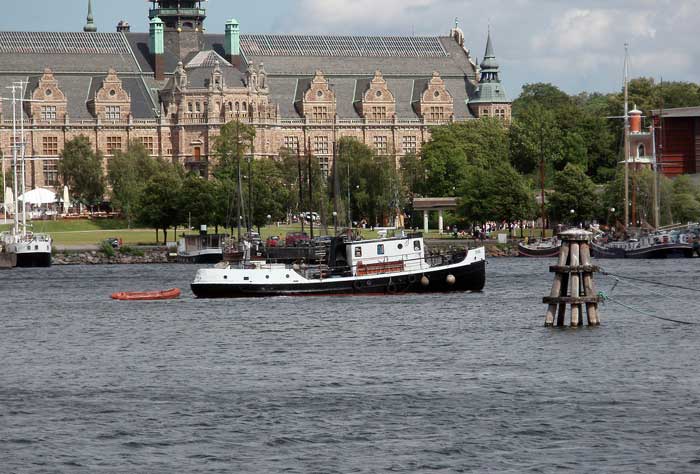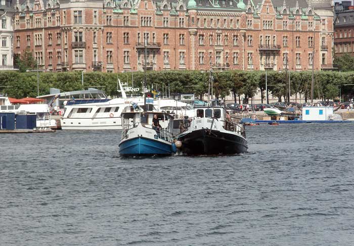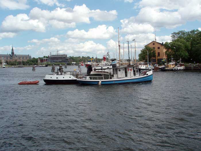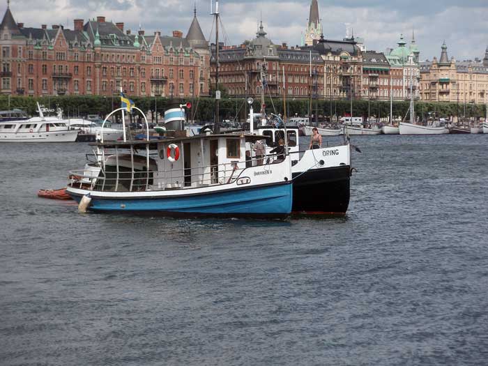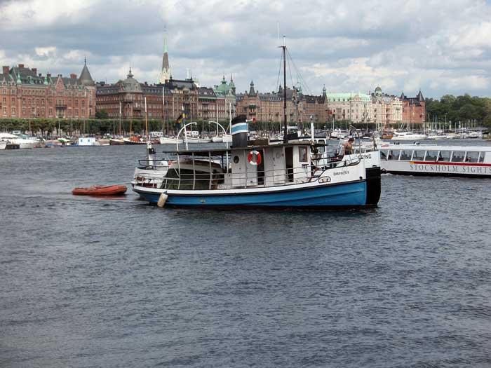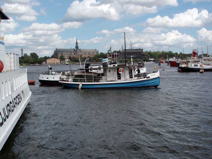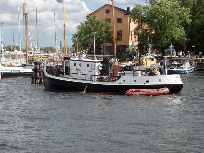 Nymålade, direkt från Beckholmsdockan kommer Öring med Öhrviken II till Skeppsholmen - 18/7 2007