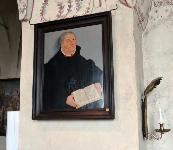 Martin Luther troligen målad av Lucas Cranach d.y. (1515-1586). Sannolikt hemförd som krigsbyte av Karl Gustaf Wrangel.