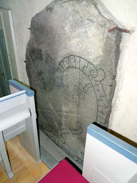 Runsten U 167 har tidigare legat som tröskelsten i kyrkans södra dörr. Togs fram 1924.