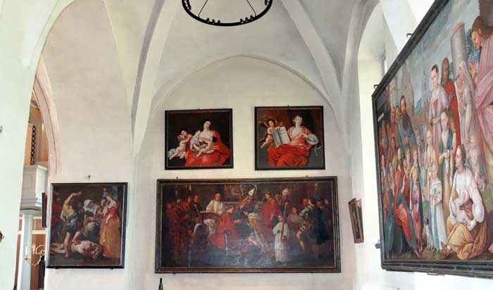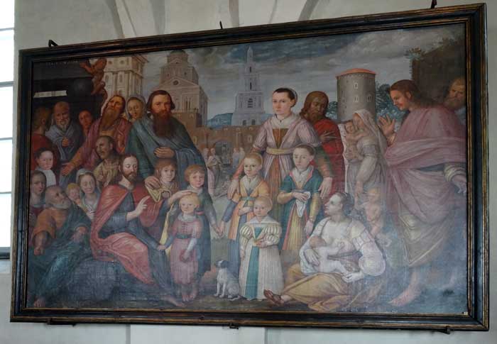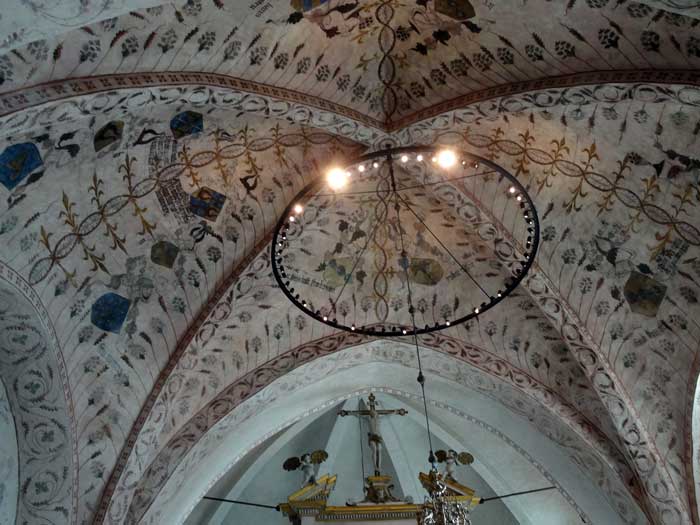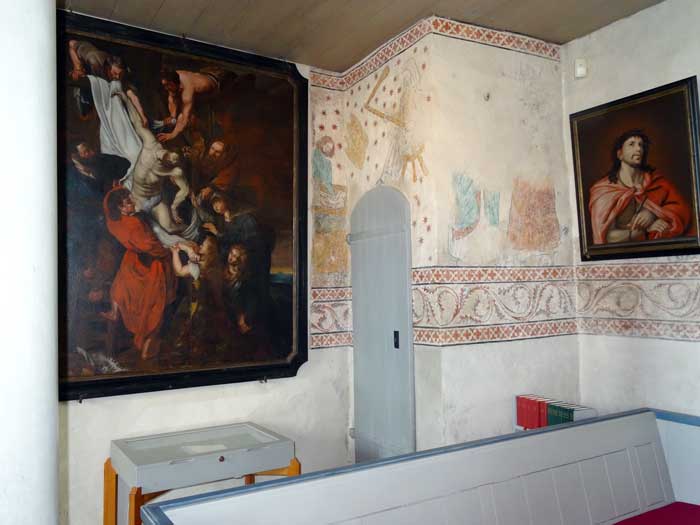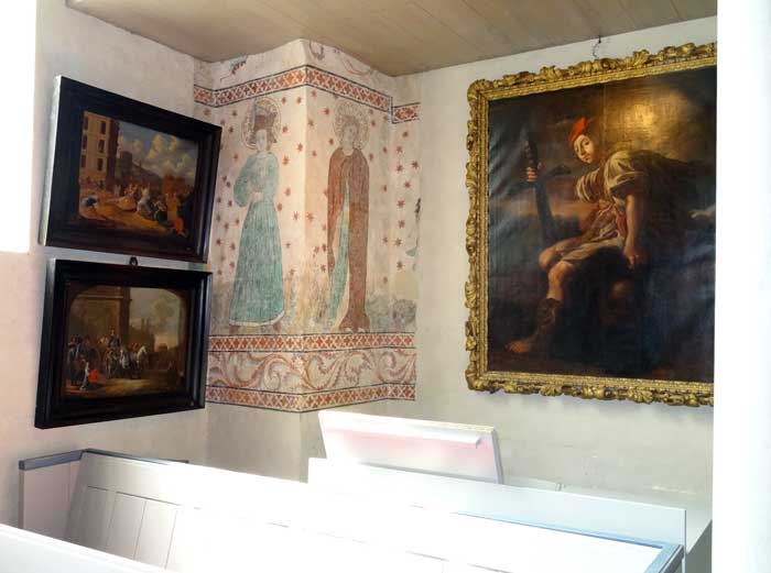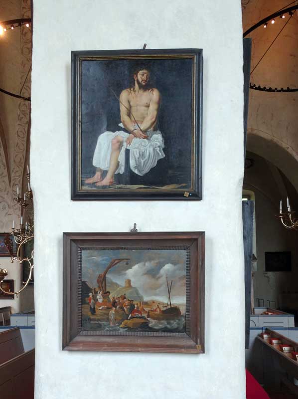 Kyrkan har många tavlor, bl a denna föreställande Nils Brahe på lit de parade.