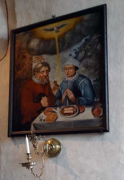 Abraham och Sara till bords, från 1600-talet. Skänkt till kyrkan 1734 "ifrån Bogesund och fröken Teckla".
