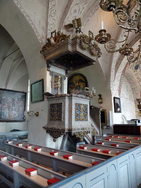 Predikstolen från 1696 signerad av Andreas Heysig.