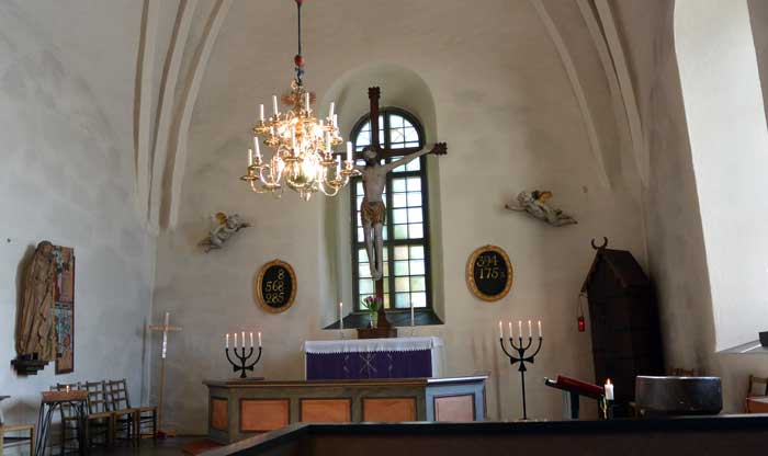 Kristusbilden som är altarprydnad härrör från ett triumfkrucifix från slutet av 1400-talet. Den sattes på sin nuvarande plats 1920.