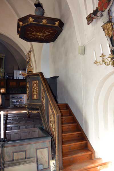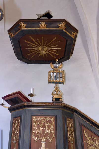 Predikstolen inköptes 1718, snidad av Carl Spaak, Stockholm.