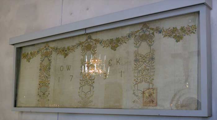 Antependium från 1731 skänkt av Olof Wijnbladh och hans fjärde maka Elisabeth von Kaulbars.