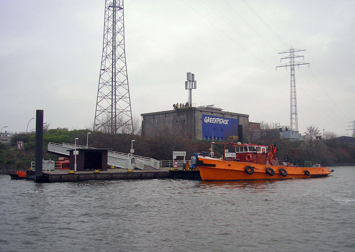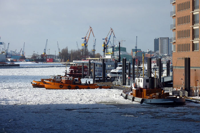 i bakgrunden syns dockor vid varvet Blohm & Voss