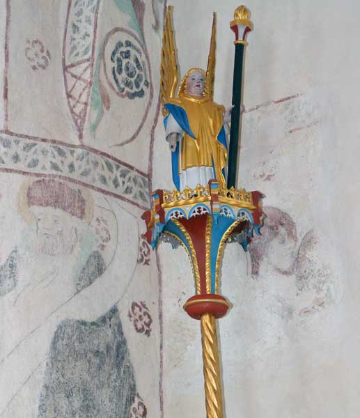 I tornbågen finns kalkmålningar från 1200-talets slut.