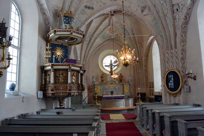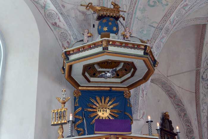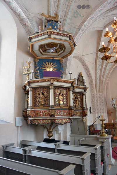 Predikstolen är från 1670-talet.