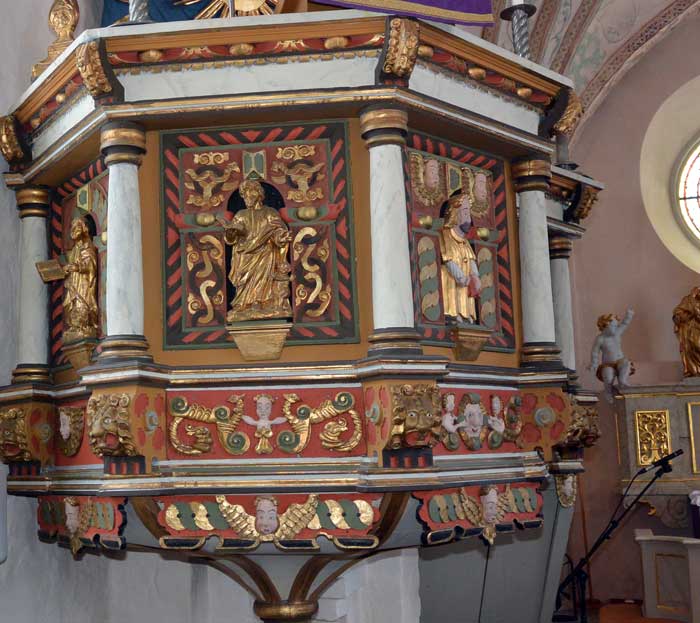 Under 1700-talet gjordes en ombyggnad av predikstolen och de fyra evangelisterna ersattes av nya i barockstil.
