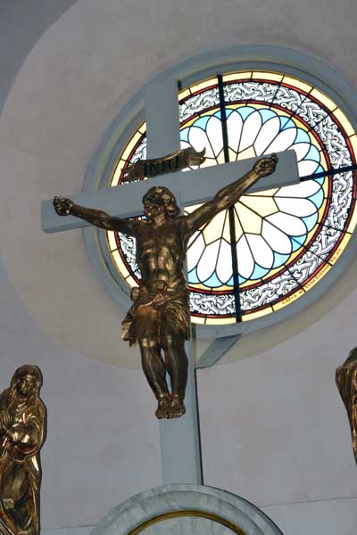 Detalj av ovanstående bild, föreställande Johannes och Maria vid korset.