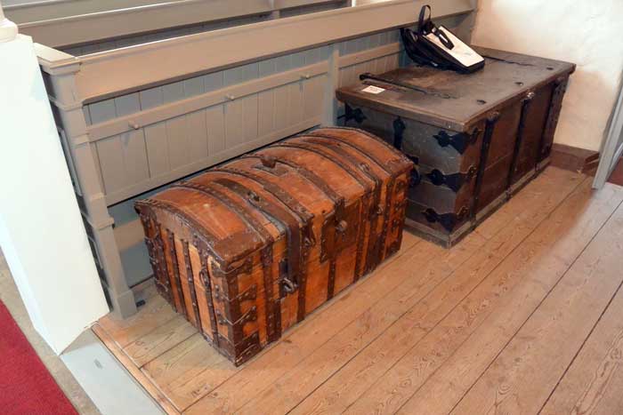 Två gamla kistor utanför vapenhuset.