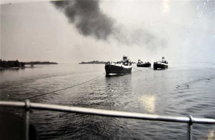 Större pråmar på släp efter ELWE i Husaröleden - 1939