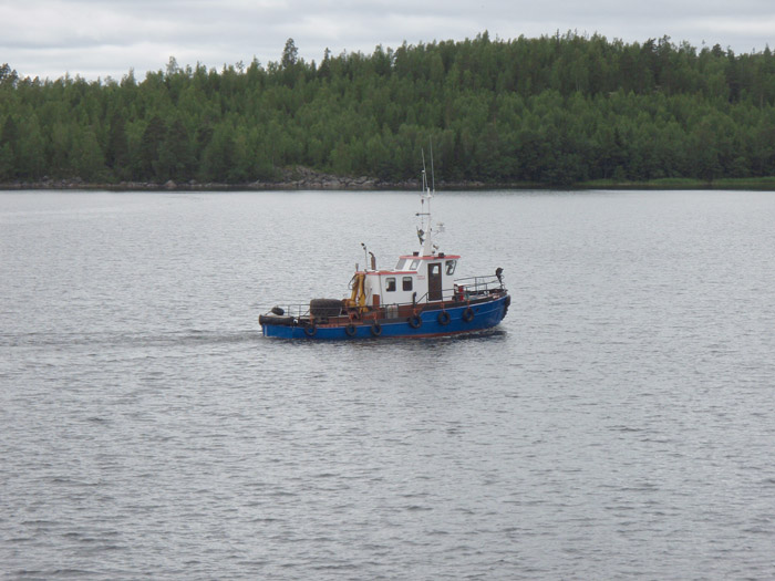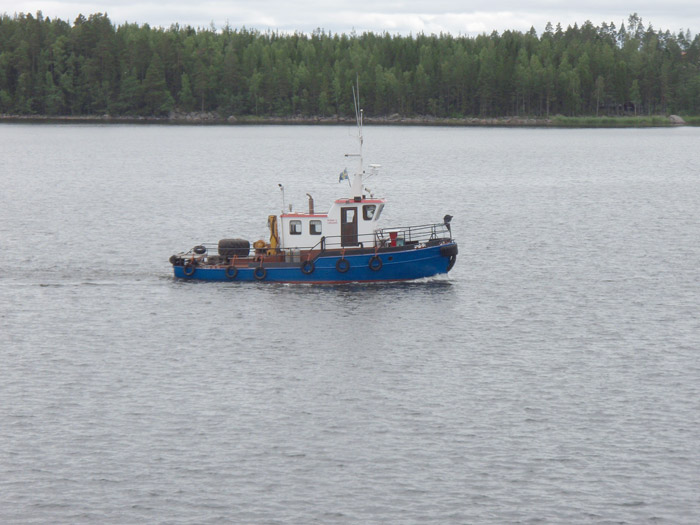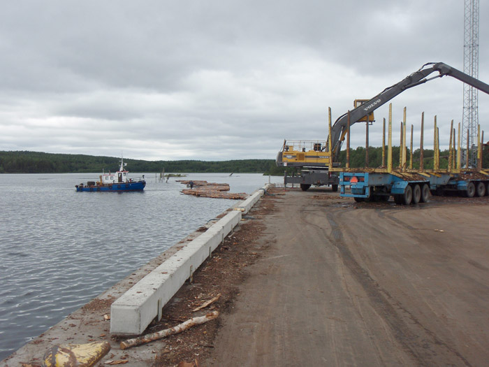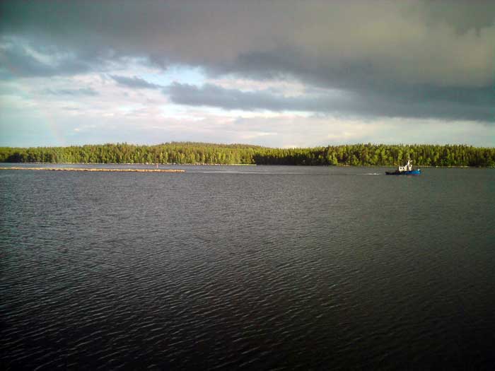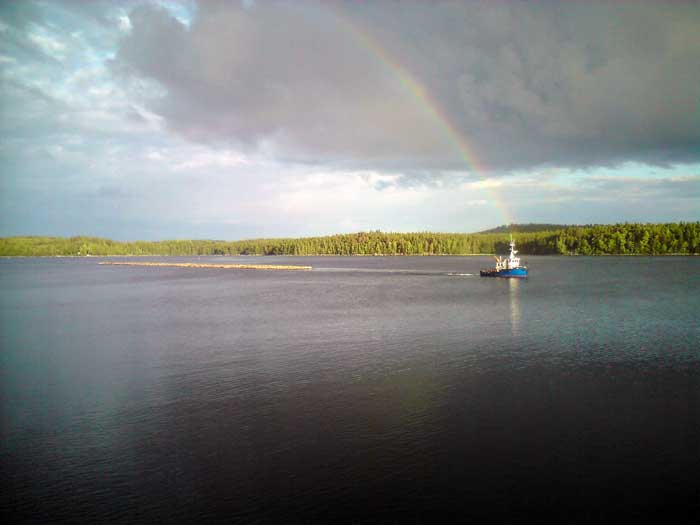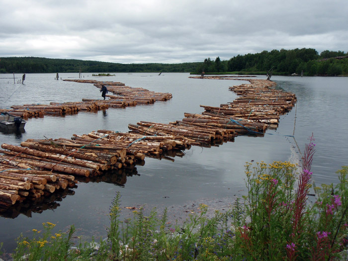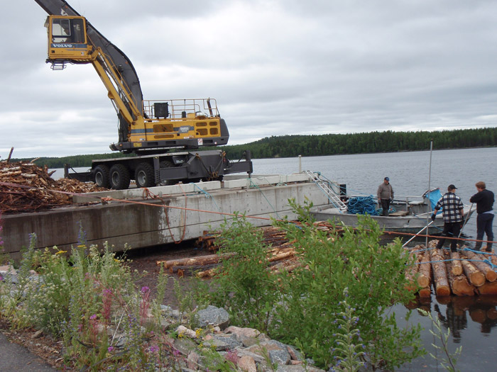 Efter att ha avverkat ute på en ö utanför, så flottades timret in till Iggesund - 21/7 2009