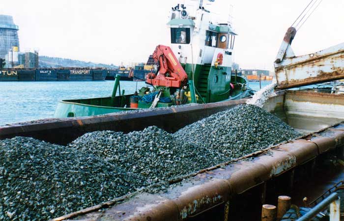 RODNY släpade pråm med muddermassor från kjedjemudderverket TRITON (Philip Holzman AG, Hamburg)