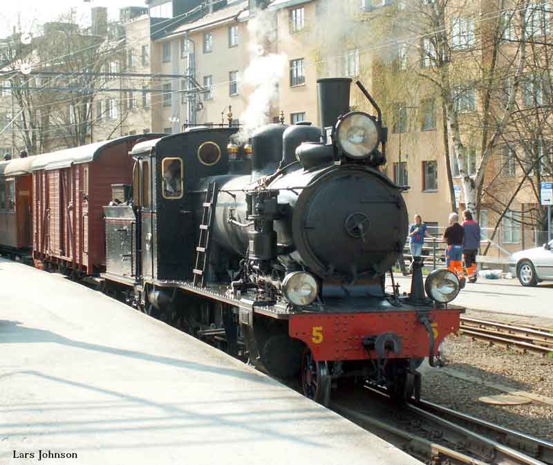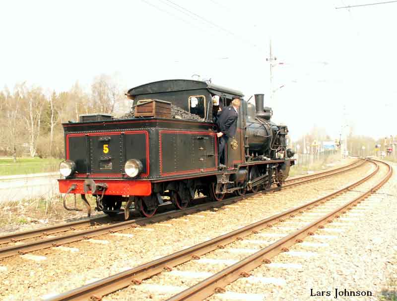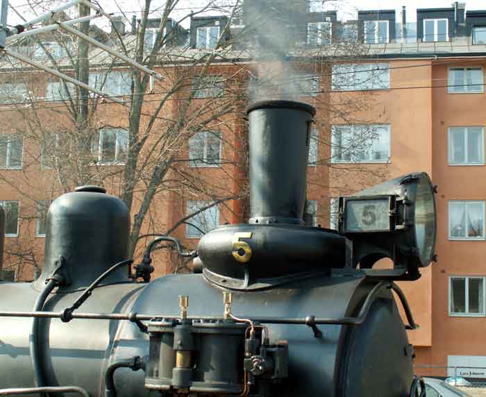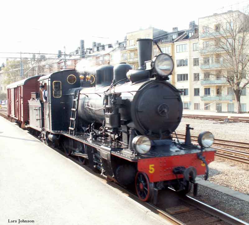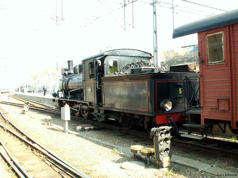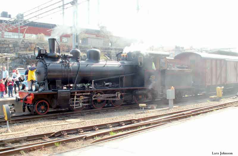 Byvalla-Långshyttans Järnvägs lok nr 5 - Thor, backar ner för att kopplas ihop med personvagnarna.