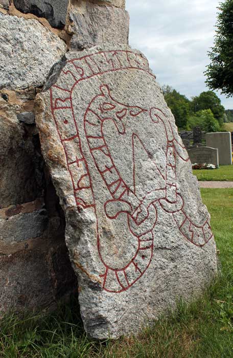 Runsten som är delvis skadad, fanns liggandes vid Botkyrka kyrka och restes mot kyrkväggen år 1900.