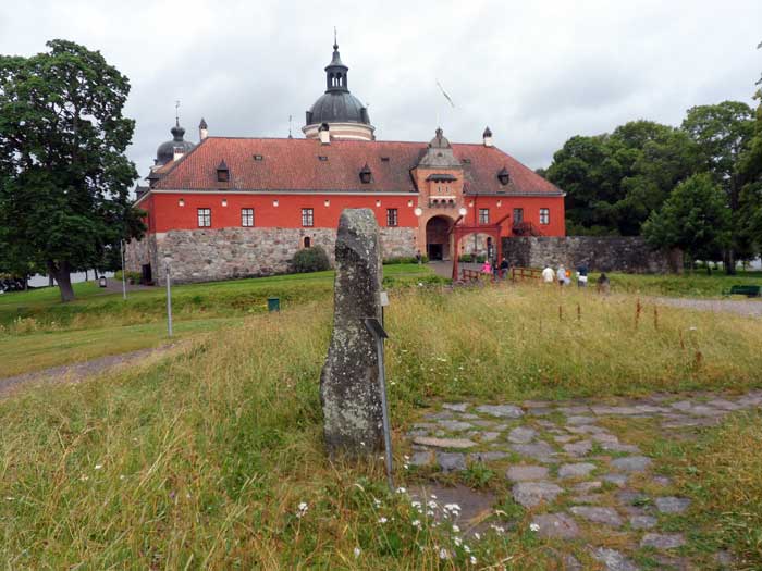 Gripsholms slott med runstenarna i förgrunden