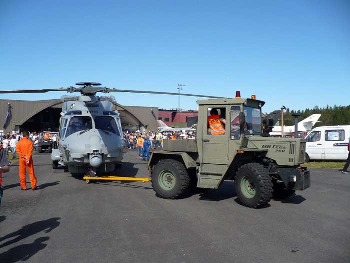 Okänd helikopter, men dragaren är en MB Trac 700