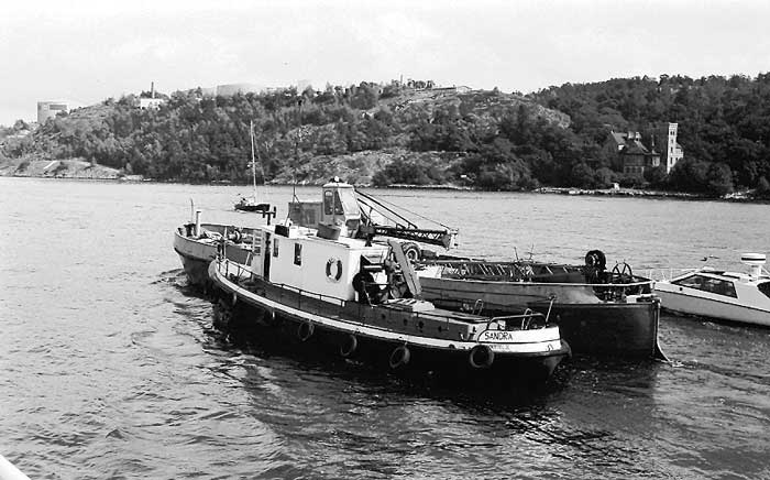 SANDRA med pråm utanför Blockhusudden 11/8 1985