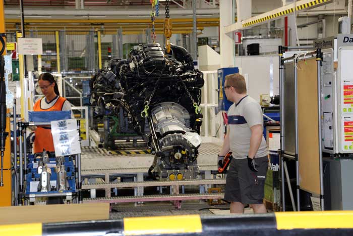 Färdigmonterade bilar rullar mot uppställningsplatsen