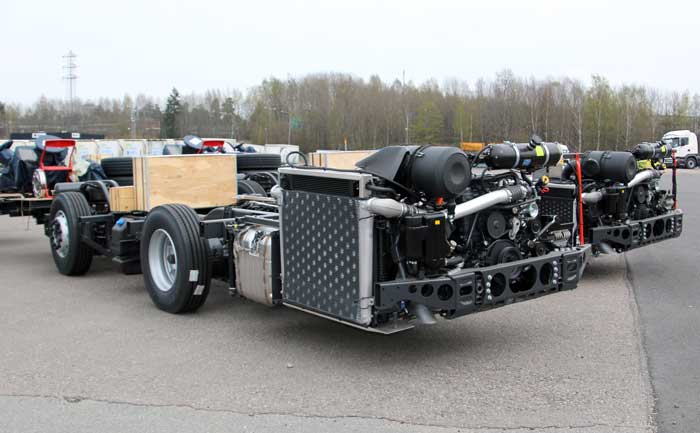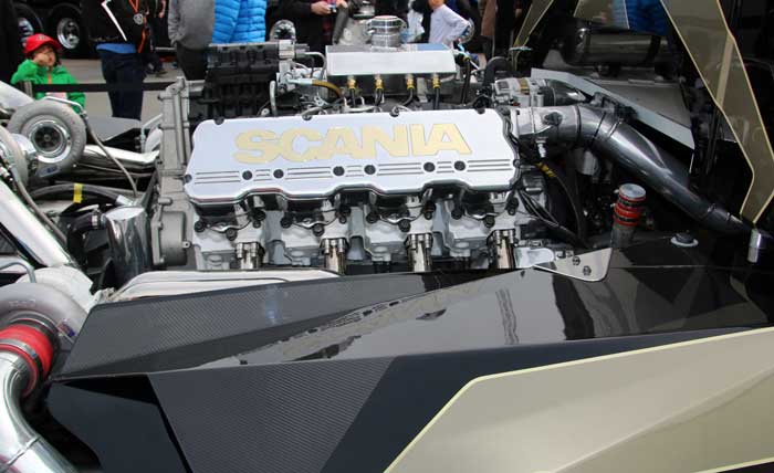 Scania med CP19-hytt. en 1460 hk DC16 med specialpreparerad Allison automatväxellåda GA866. 4780 kg som klarar 0-100 på 4,6 sek. Design Jan Richter och "Svempa" Bergendahl.